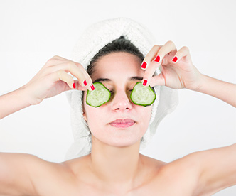 These contain a lot of water and antioxidants like Vitamin C, so putting them on tired and puffy eyes for 10-20 minutes while keeping eyelids closed can rejuvenate the eye area.